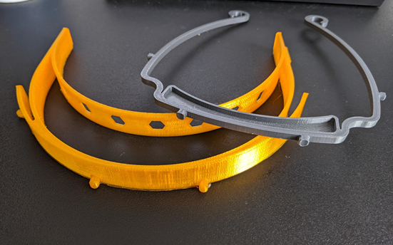 During the Covid Pandemic Andy and many other people with 3d Printers started to produce Face shields, These 3d printed parts held sheets of acetate to create make shift face shields for front line workers.