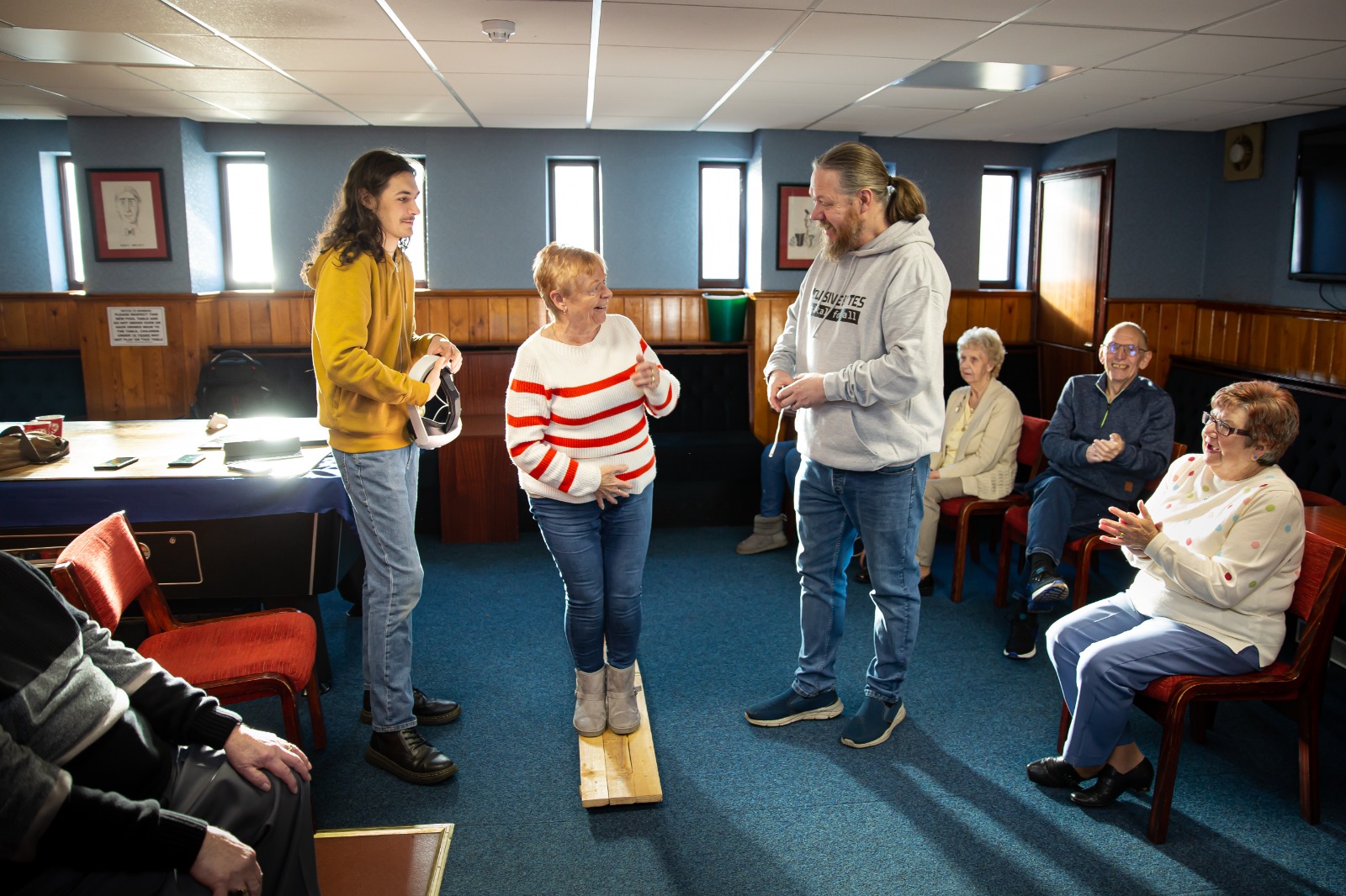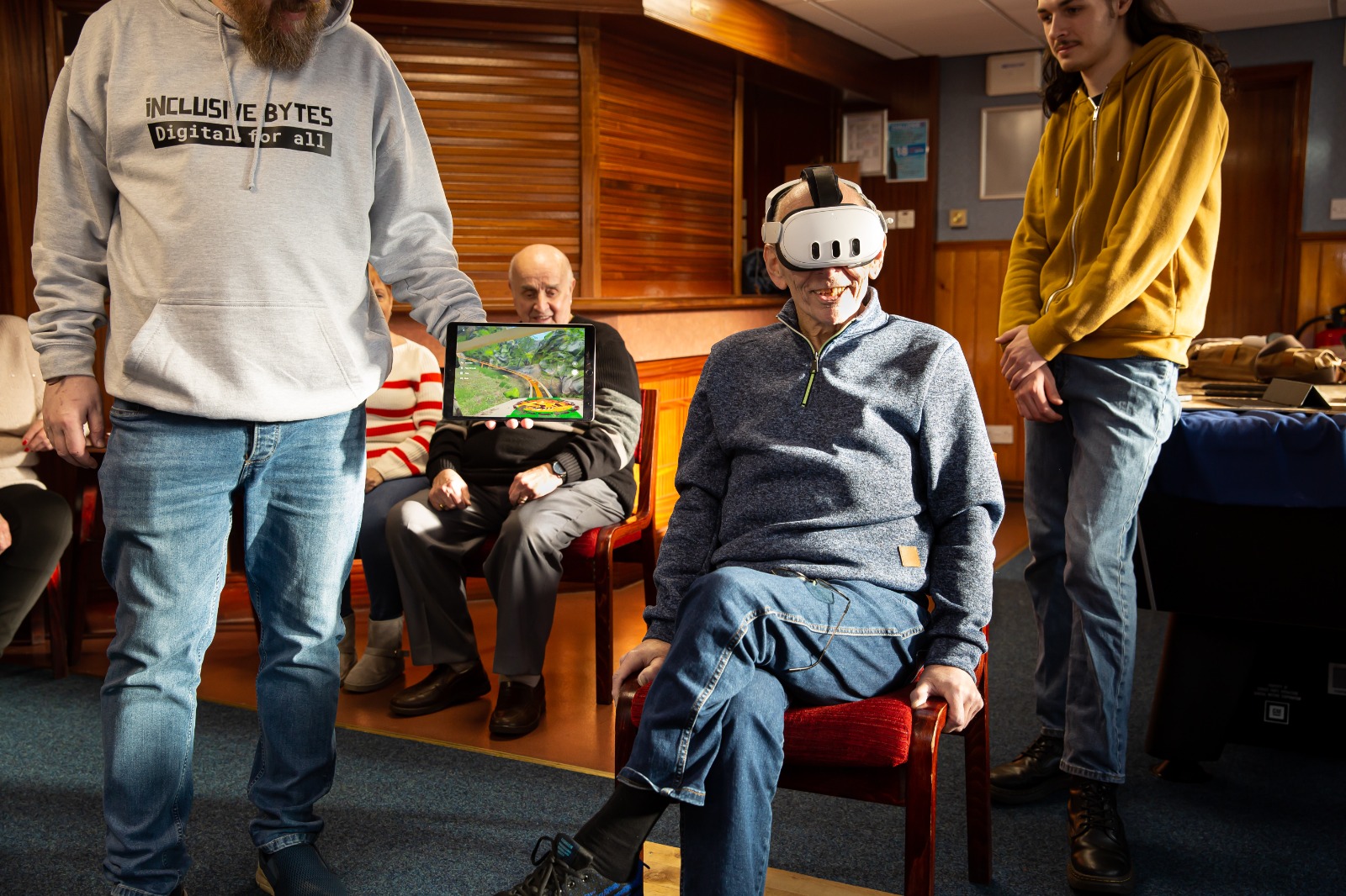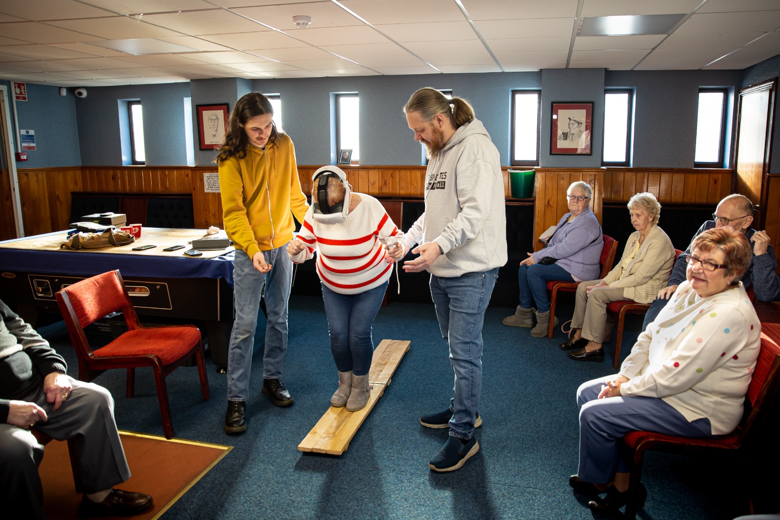 We introduced the residents to the Meta Quest 3, a virtual reality headset that can take you to other worlds, in this case we let the residents experience a roller coaster and a high rise plank experience all from the safety of a church hall.